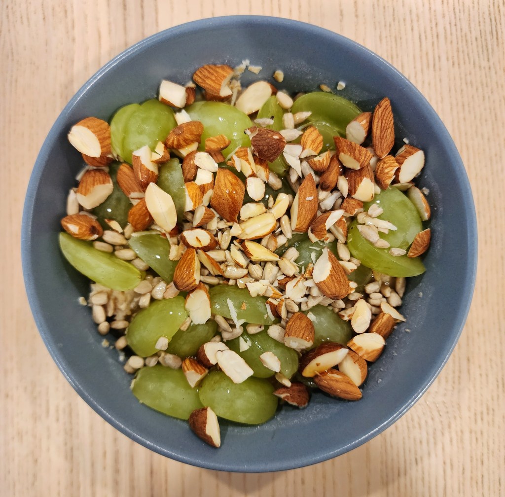 Cereal + fruit + nut + seed + sweetener = tasty breakfast